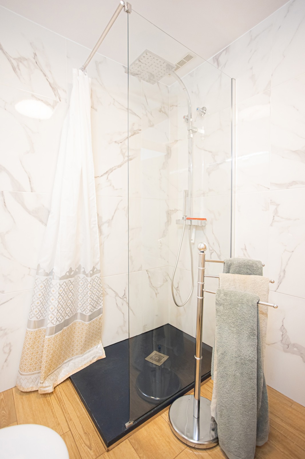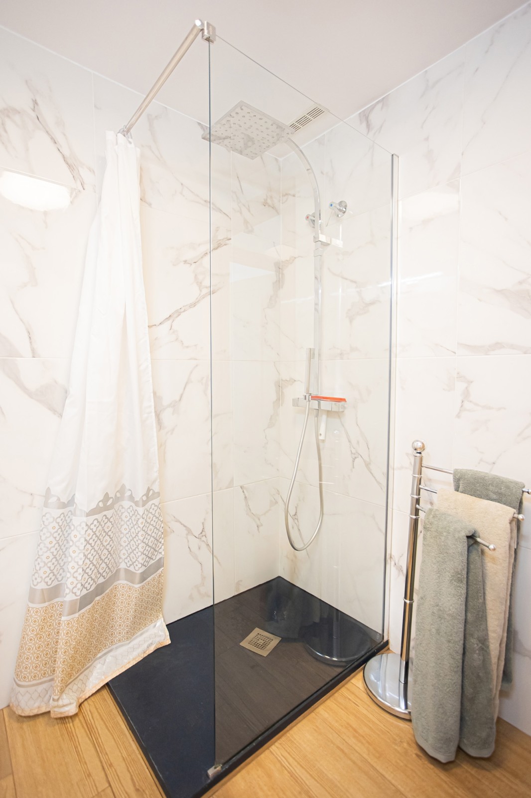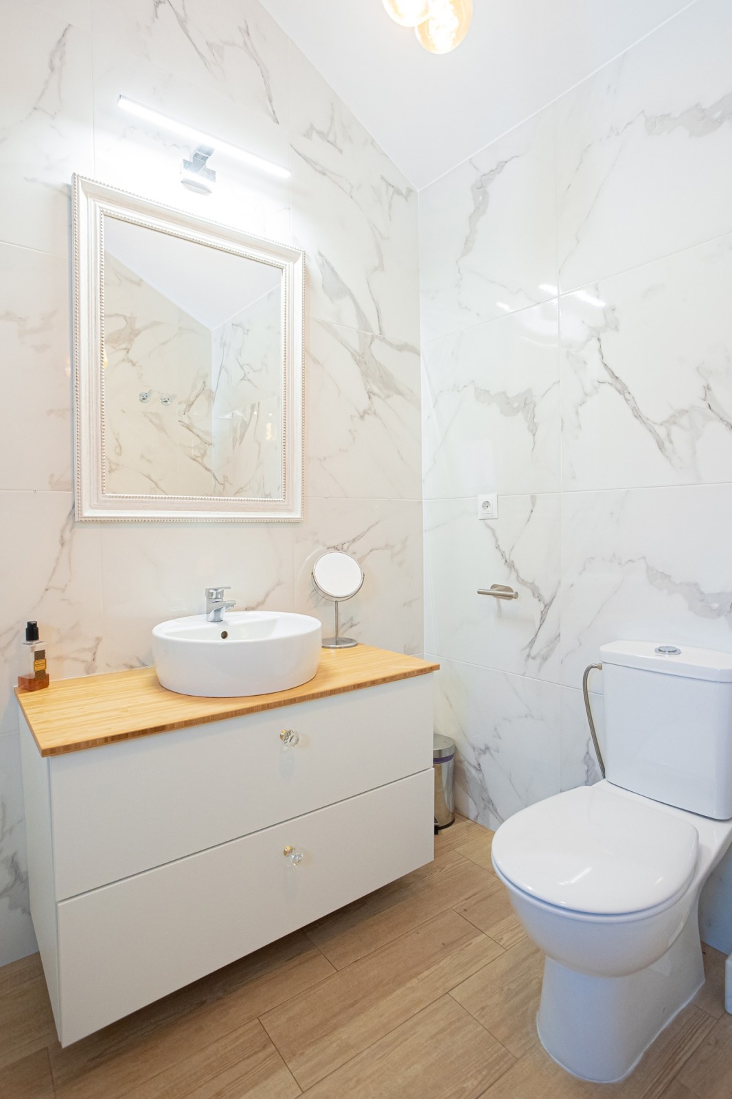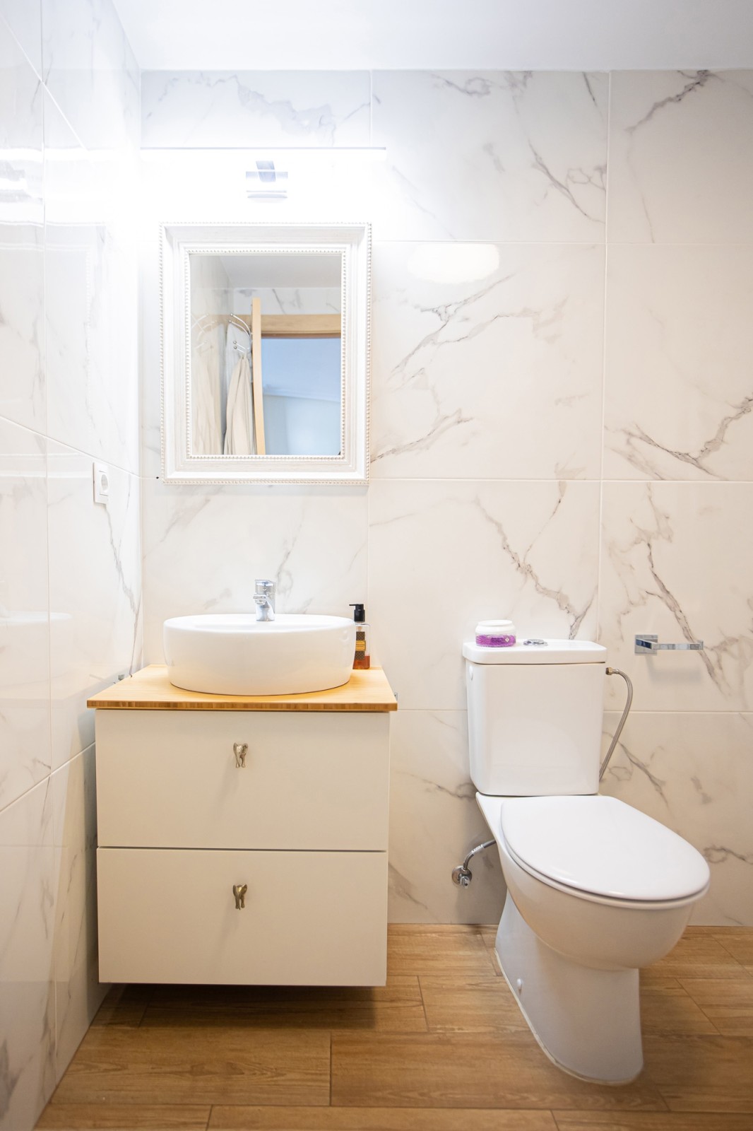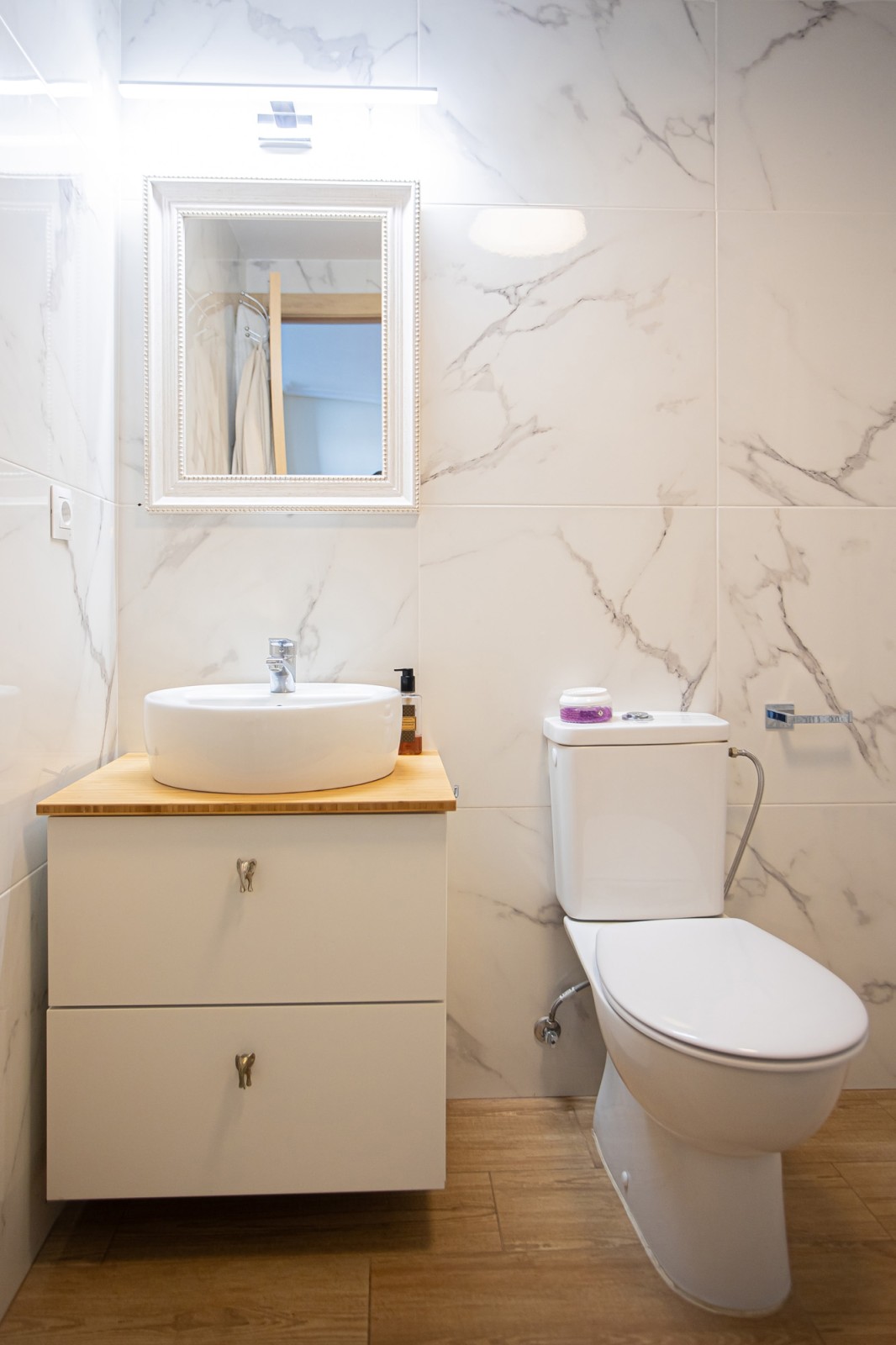 The living room seamlessly extends to a private terrace with wonderful views of the iconic La Concha mountain, providing a perfect setting for relaxation and outdoor living. This level also features two generously sized bedrooms, each with plenty of space for double beds and fitted wardrobes. A stylish marble bathroom complements this floor. Additionally, there is a large terrace facing the courtyard, ideal for enjoying pleasant dinners in the evening sun.