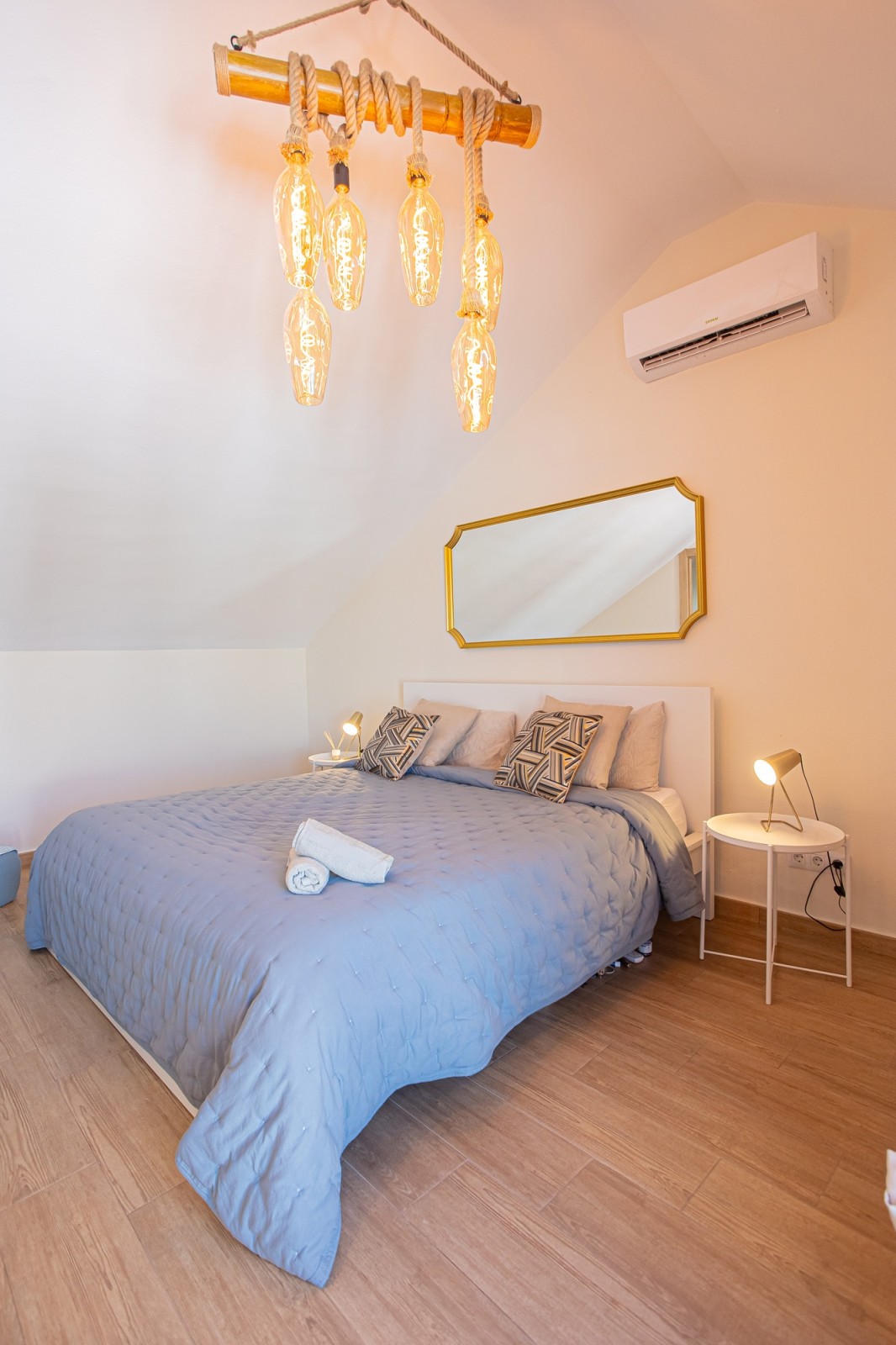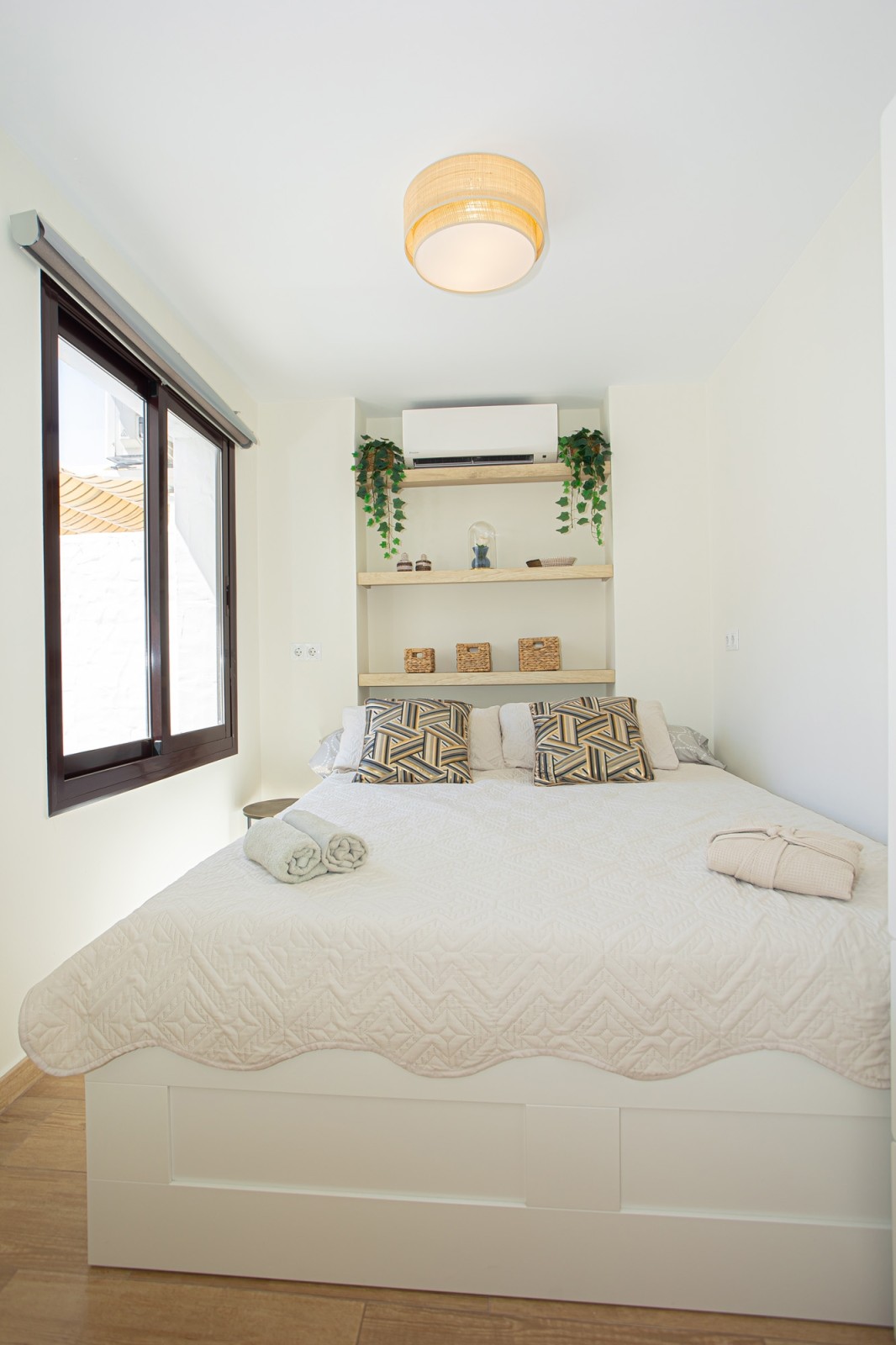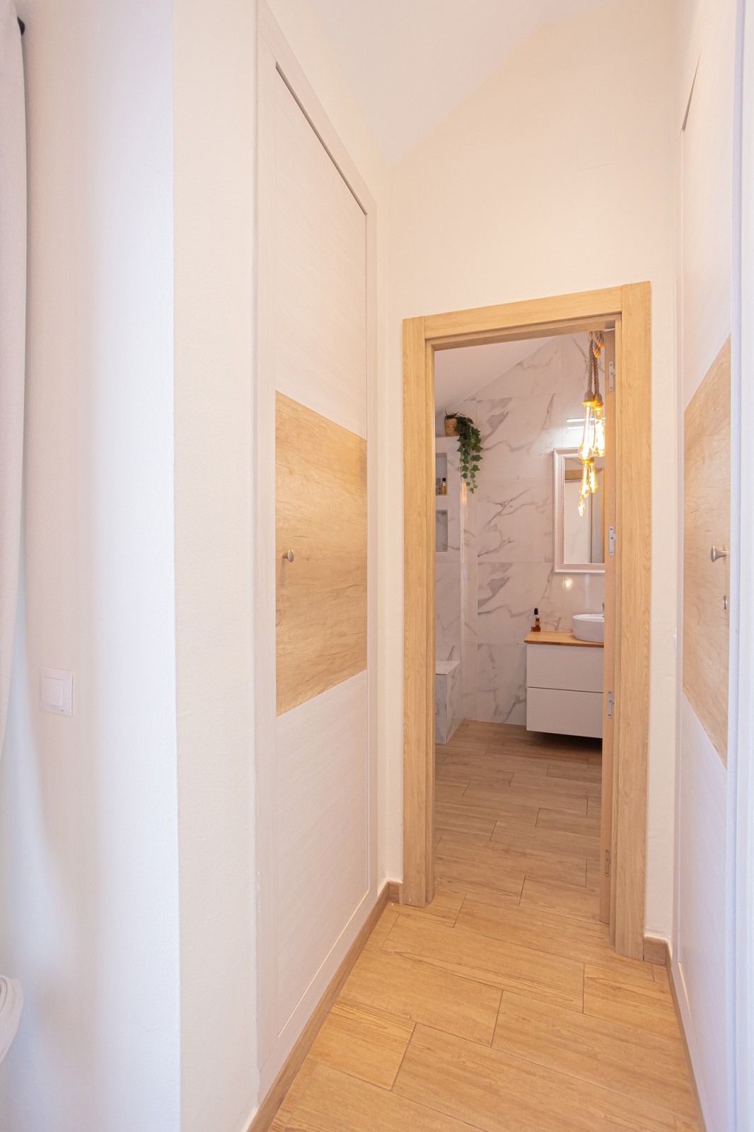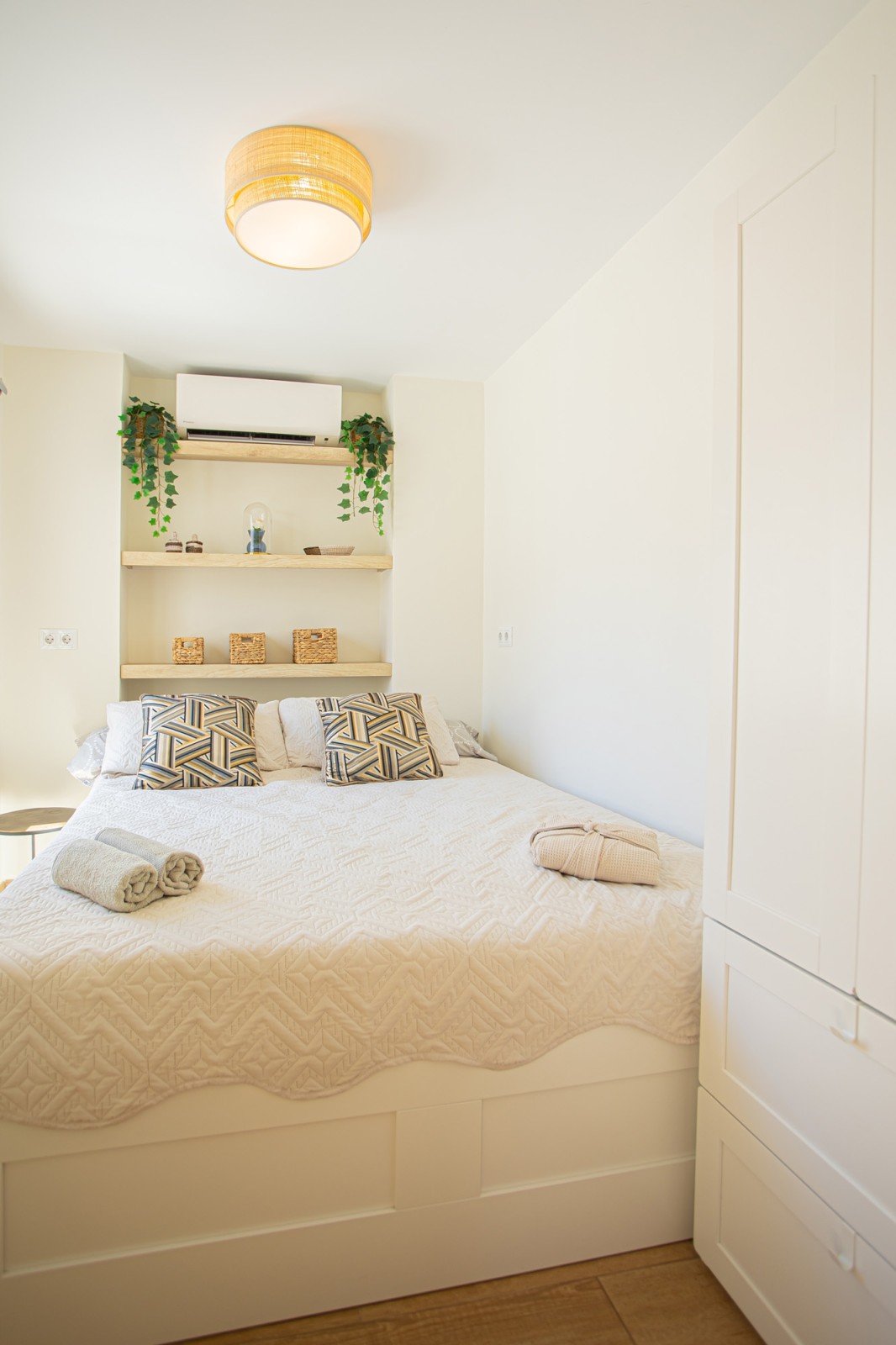 The upper level of the penthouse is dedicated to the master bedroom, which features a lovely walk-in closet and a private terrace with enough space for sun loungers. The master bedroom terrace also includes additional storage space and a parking area.