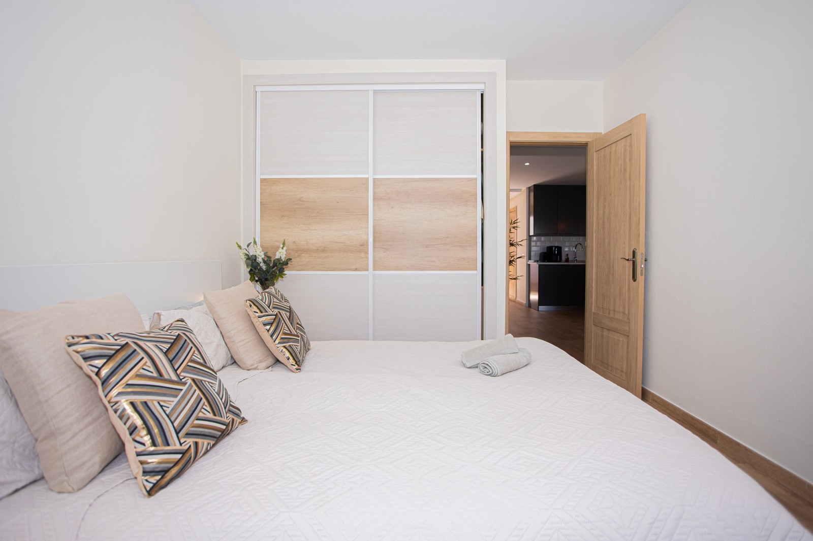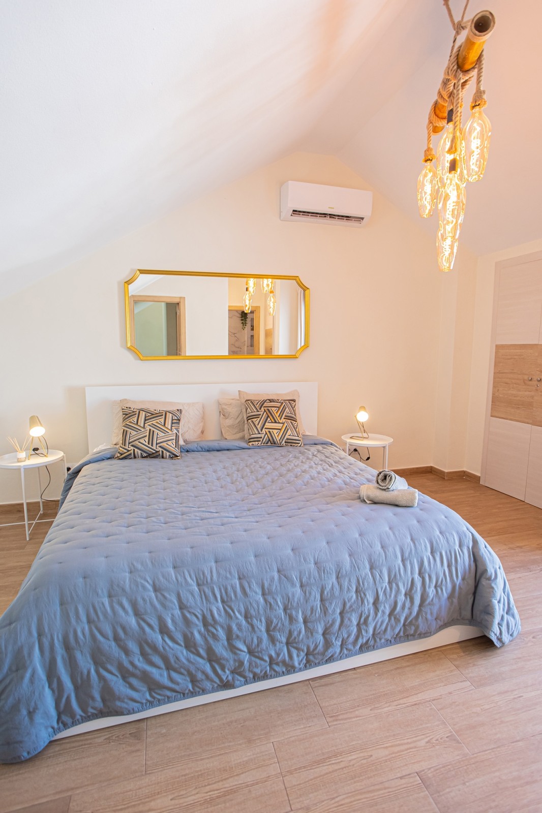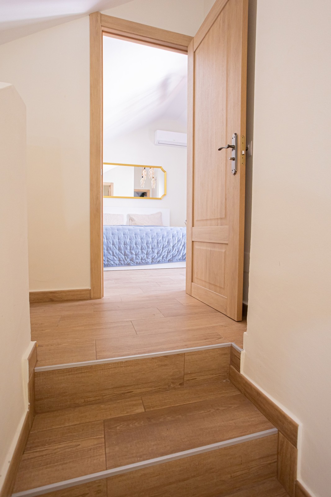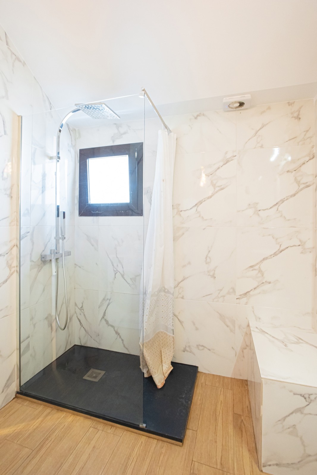 The upper level of the penthouse is dedicated to the master bedroom, which features a lovely walk-in closet and a private terrace with enough space for sun loungers. The master bedroom terrace also includes additional storage space and a parking area.